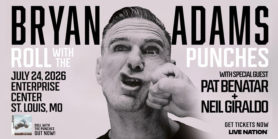 Bryan Adams brings the Roll with the Punches Tour to Enterprise Center with special guest Pat Benatar and Neil Giraldo on July 24!